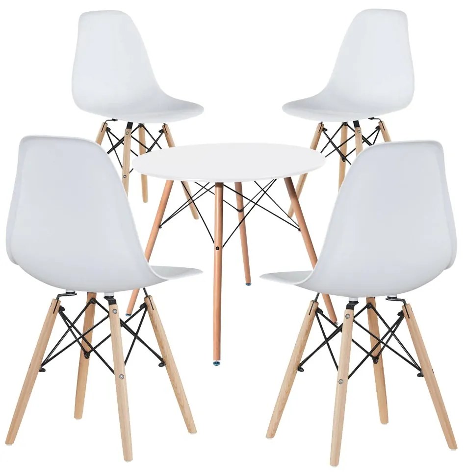 4 ks moderných jedálenských stoličiek so stolom, 3 rôzne farby, priemer stola 60,5 cm, do bytu, alebo do pohostinského zariadenia, v bielej, sivej alebo čiernej farbe.-Alinda.sk
