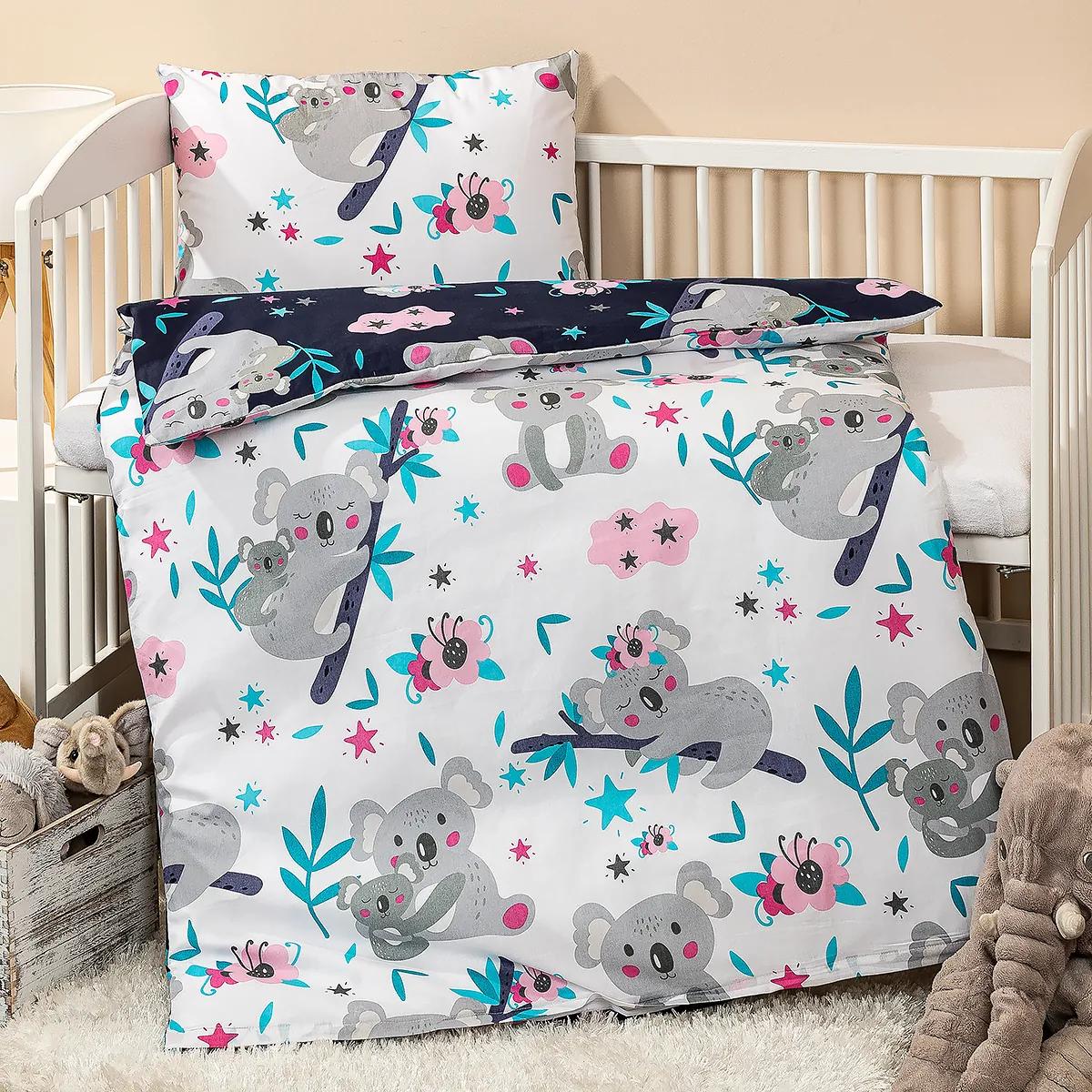 Každodenná dávka roztomilosti pre pokojné zaspávanie aj svieže ranné vstávanie. Kúzelné bavlnené obliečky do postieľky s koalami nesmú chýbať v žiadnej štýlovej detskej izbičke. Zamilujete si ich na prvý pohľad vy aj vaše deti. Ich originalitu podčiarkuje aj obojstranné prevedenie – jedna strana je tmavomodrá, druhá kontrastná biela a na oboch nájdete veľa roztomilých koál.Kvalitná 100% bavlna zabezpečí maximálny komfort a je šetrná aj k citlivej detskej pokožke. Môžete tak zaspávať s vedomím, že o pohodlie vašich ratolestí je postarané do najmenšieho detailu. Obliečky majú praktické zapínanie na zips. Súprava obsahuje: