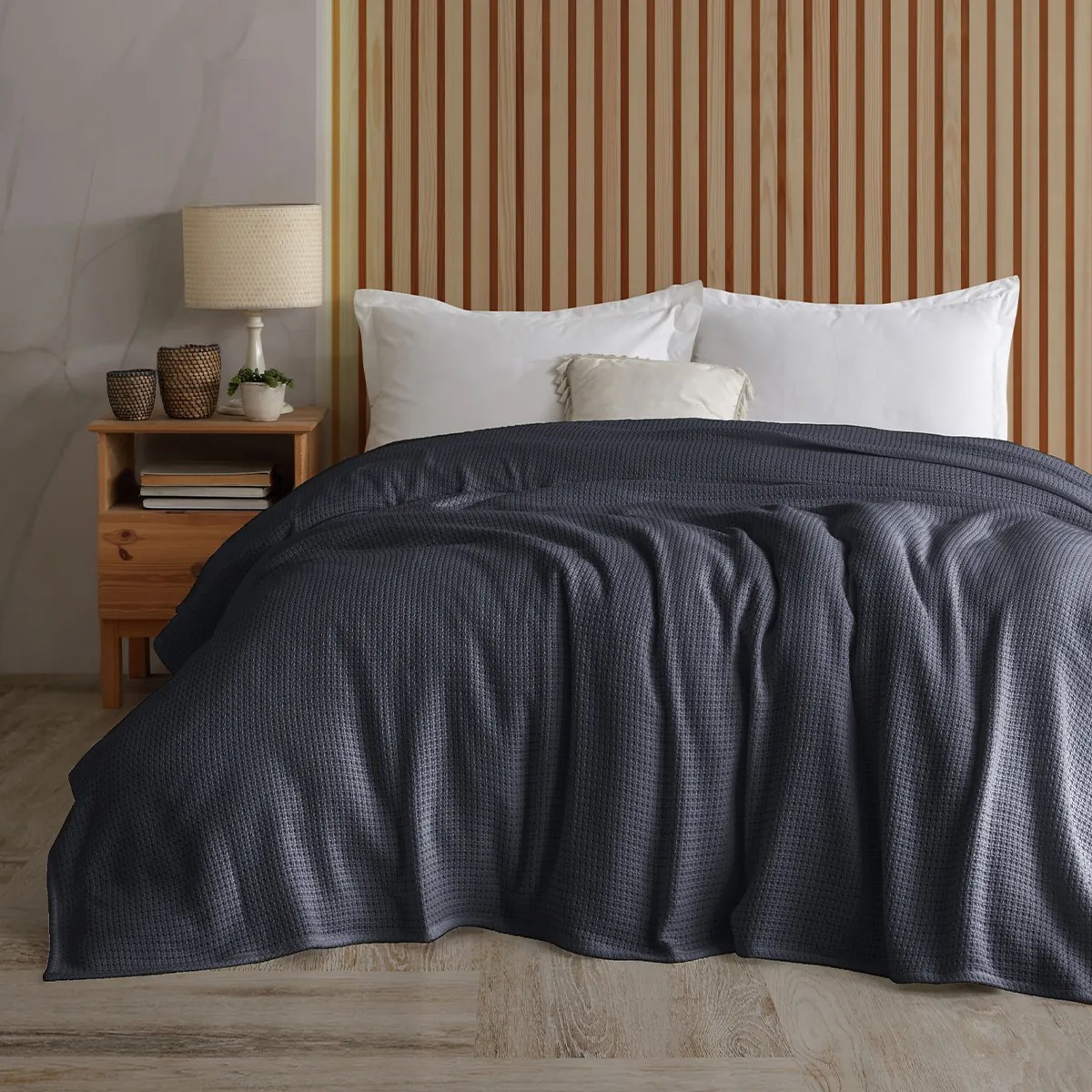 Dolaďte svoju spálňu elegantným bavlneným prehozom na posteľ v antracitovej farbe a doprajte si dokonale ustlanú posteľ aj perfektne zladený interiér. Antracitová farba dodá celkovému dizajnu nielen nádych elegancie, ale aj luxusu. Ako tmavý a zároveň neutrálny odtieň sa skvele hodí k rôznym interiérovým štýlom a farebným kombináciám. Prehoz je vyrobený z vysoko kvalitnej bavlny, ktorá je príjemná na dotyk a zaistí maximálne pohodlie.Prehoz na posteľ z mäkučkej 100% bavlny v obľúbenom pletenom vzhľade bude nielen pútavým doplnkom pre dokonalé hrejivé kúzlo domova, ale vďaka príjemnému materiálu ho využijete aj ako velikánsku deku, do ktorej sa pohodlne zababuší celá rodina. Prehoz ochráni vaše obliečky pred vyblednutím aj všadeprítomným prachom, a navyše bude vaša posteľ vždy rýchlo ustlaná.Pokyny na údržbu: odporúčame sušenie vo vodorovnej polohe z dôvodu zachovania kvality a rozmerov prehozu.