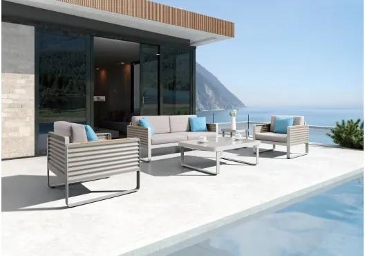 Sedací souprava HIGOLD AIRPORT vás zaujme designem, který je inspirován vzhledem starých letadel. Od toho je také odvozen název „AIRPORT“. Kolekci navrhl designer Nicolas Thomkins. Souprava je vyrobena z ohýbaného lisovaného T-profilu a ze zvlněného hliníkového pláště. Dokonalý vzhled vytváří kombinace tradičních potahů s pásy, zvyšujícími pohodlí, a polštářky, které celý design doplňují. Souprava působí velice vkusně a je vysoce komfortní. Súprava AIRPORT je vyrobená z ohýbaného lisovaného T profilu a zo zvlneného hliníkového plášťa. Dizajn je inšpirovaný vzhľadom starých lietadiel. Dokonalý vzhľad vytvára vynikajúca kombinácia tradičných poťahov s pásmi, ktoré zvyšujú pohodlie, a vankúšov doplňujúcich zvlnený dizajn. Farebný náter zvýrazňuje čistý vzhľad povrchu materiálu. Rozmery: Dvojsedačka 180 x 79 cm2x Kreslo 80,5 x 79 cmStolík 120 x 83 cmpríručný stolík 50 x 50 cm Materiál : Hliník Matrace a vankúše sú súčasťou súpravy