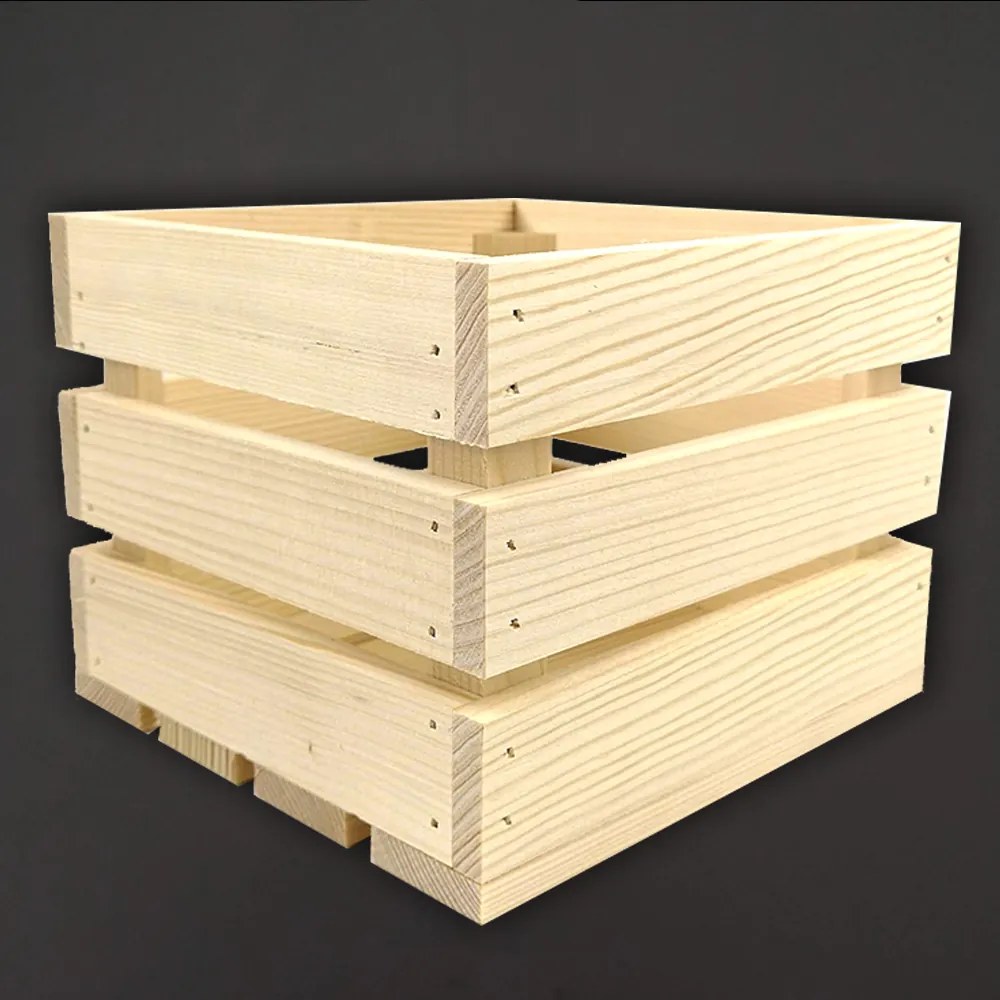 Drevená debnička z masívneho smrekového dreva, rozmery 20 x 19 x 15,5 cm, objem 5 l, nosnosť 15 kg. Krabicu možno použiť na ukladanie a organizovanie vecí, ale aj ako základňu pre darčekový kôš. Otvory zabezpečujú cirkuláciu vzduchu. Výrobok je bez povrchovej úpravy.