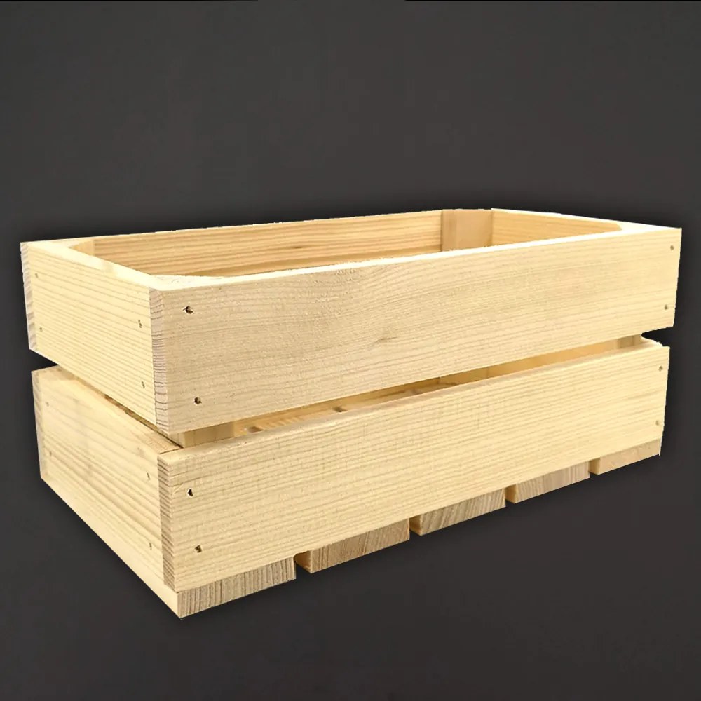 Drevená debnička z masívneho smrekového dreva, rozmery 28 x 15 x 12 cm, objem 5 l, nosnosť 15 kg. Krabicu možno použiť na ukladanie a organizovanie vecí, ale aj ako základňu pre darčekový kôš. Otvory zabezpečujú cirkuláciu vzduchu. Výrobok je bez povrchovej úpravy.