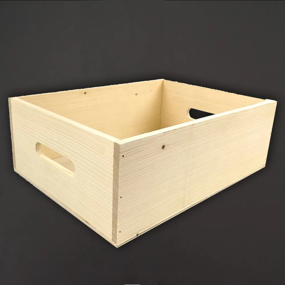 Drevená debnička z masívneho smrekového dreva, rozmery 39 x 29 x 13,5 cm, objem 15 l, nosnosť 15 kg. Krabicu možno použiť na ukladanie a organizovanie vecí, ale aj ako základňu pre darčekový kôš. Otvory umožňujú ľahké uchopenie a prenášanie. Výrobok je bez povrchovej úpravy.