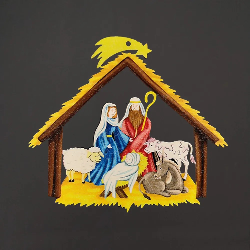 AMADEA Drevená farebná ozdoba betlehem, 9 cm, český výrobok