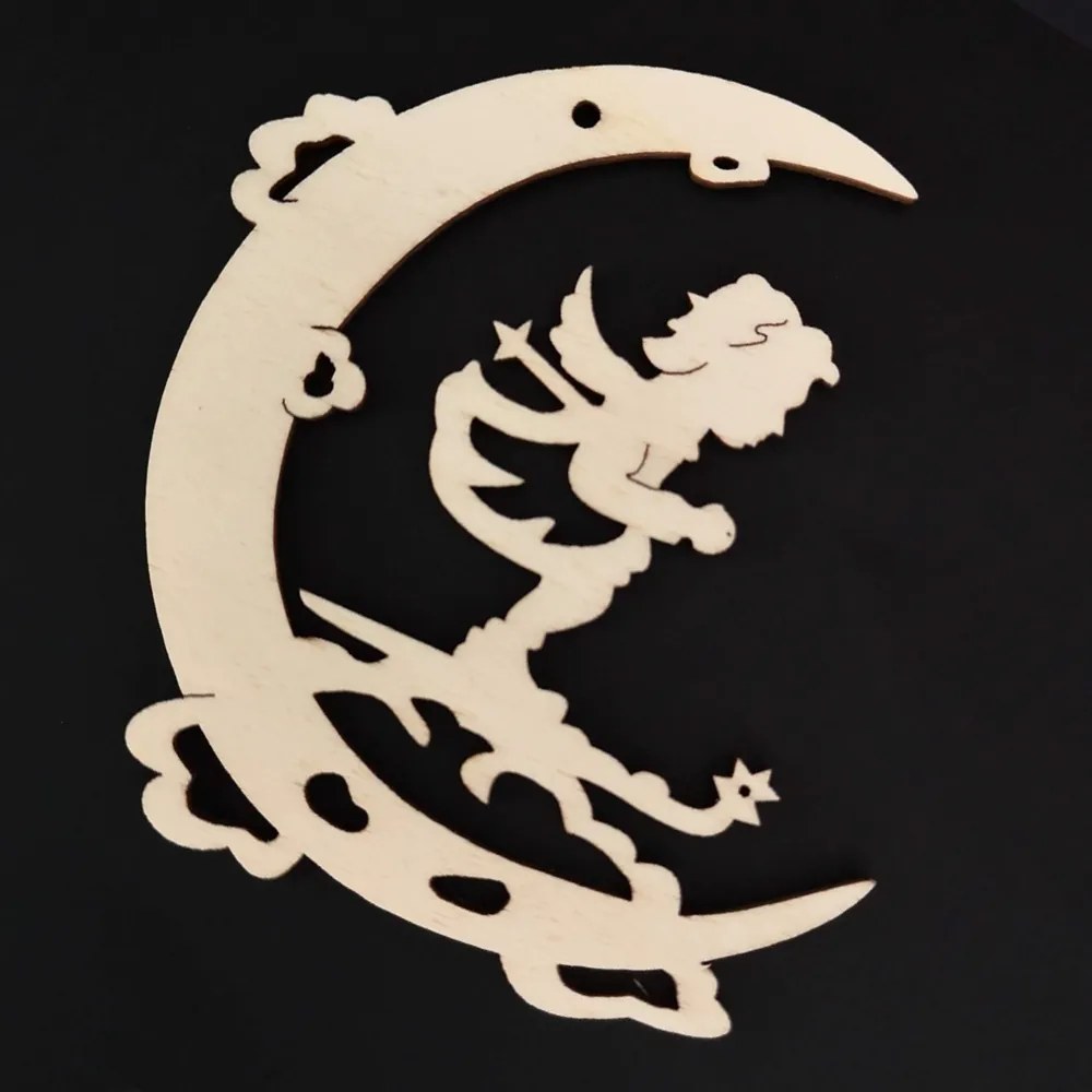 AMADEA Drevená ozdoba anjel na mesiaci na lyžiach 10 cm