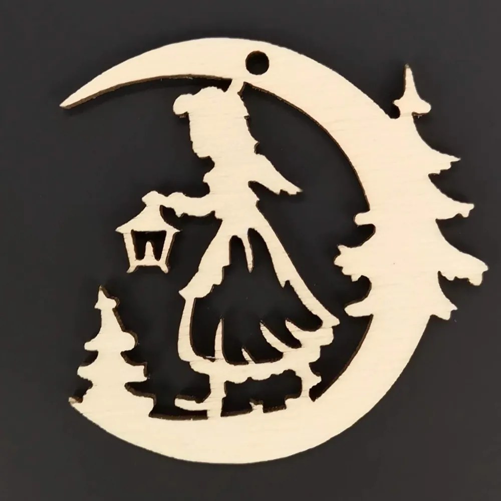 Drevená ozdoba anjel na mesiaci s lucernou 6 cm