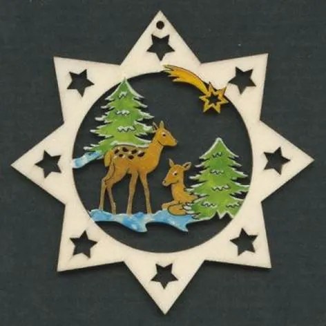 AMADEA Drevená ozdoba farebná hviezda so srnkami 6 cm