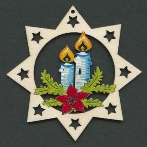 Drevená ozdoba farebná hviezda so sviečkami 9 cm