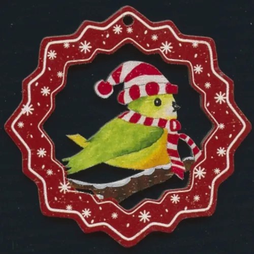 Drevená ozdoba farebná snehová vločka s vtákom 6 cm