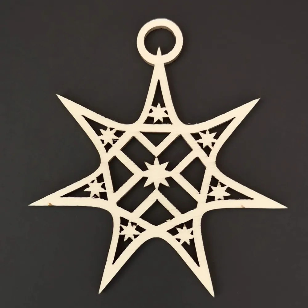 Drevená ozdoba hviezda s hviezdičkami 8 cm