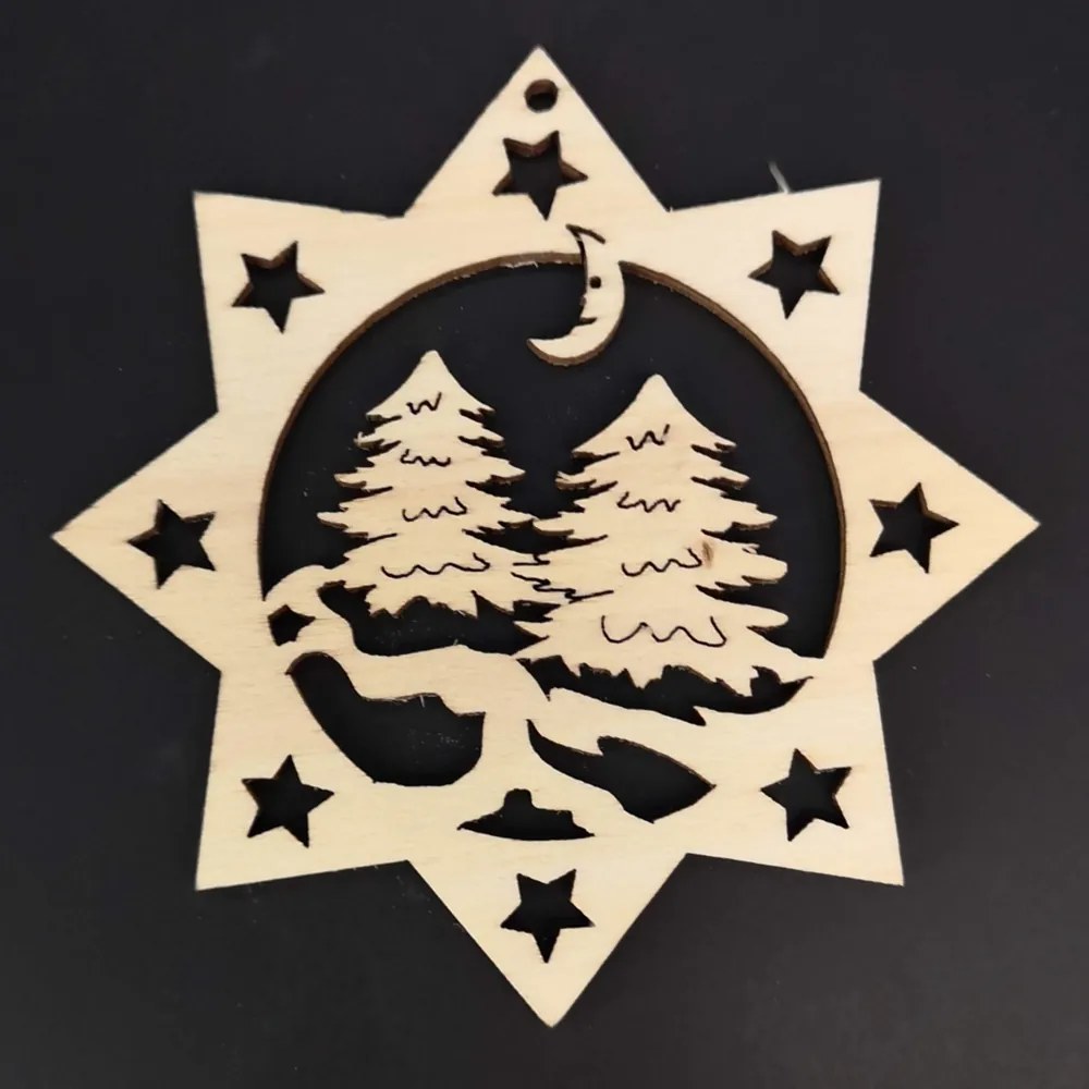Drevená ozdoba hviezda so stromami 6 cm