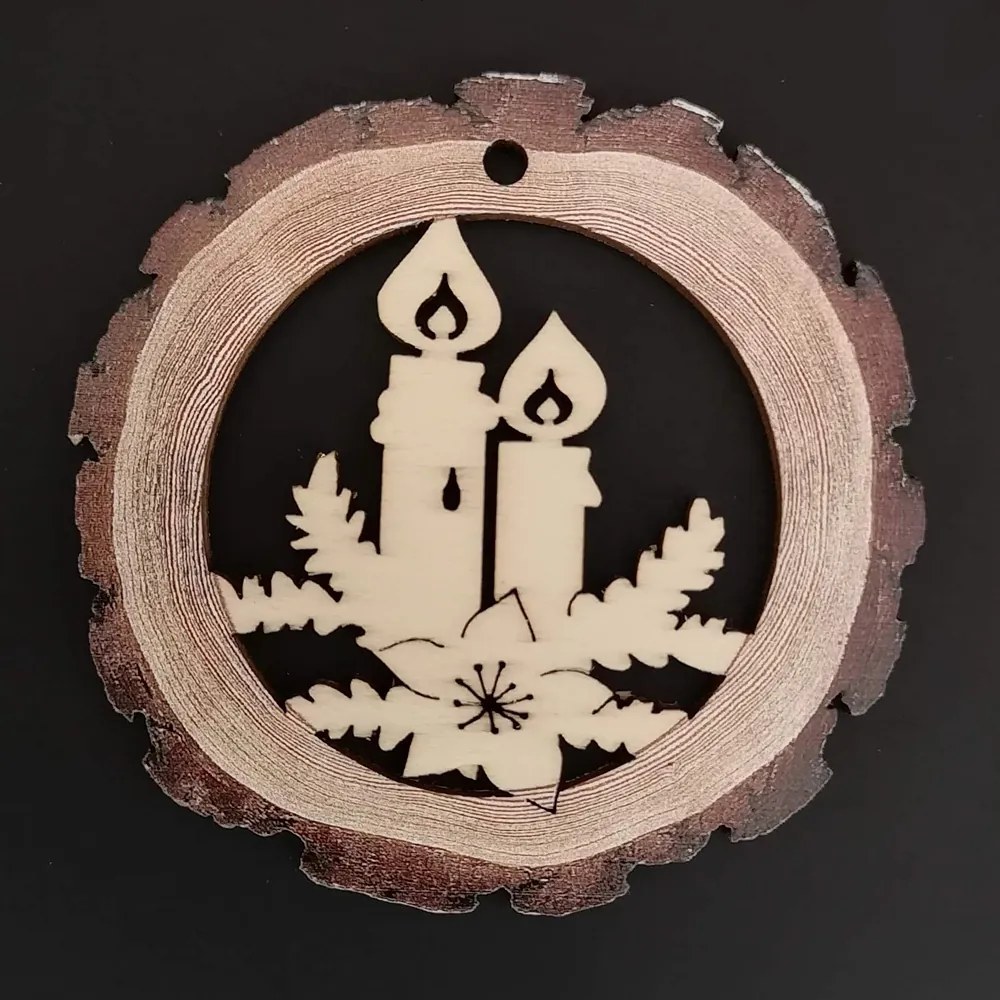 Drevená ozdoba s potlačou kôry – guľa so sviečkami 6 cm