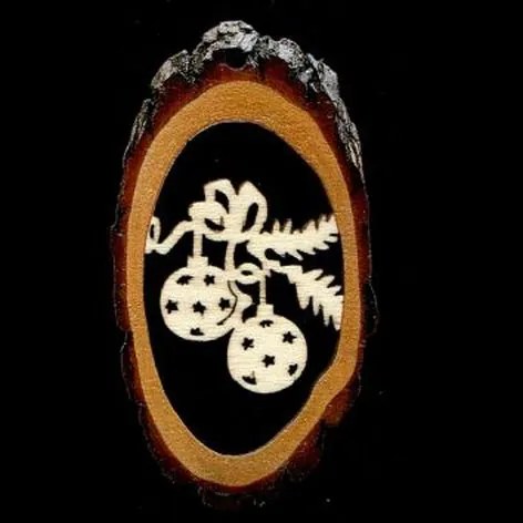 AMADEA Drevená ozdoba s potlačou kôry – ovál s guľami 6 cm