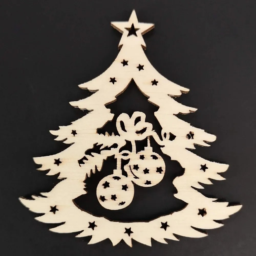Drevená ozdoba stromček s guľami 9 cm