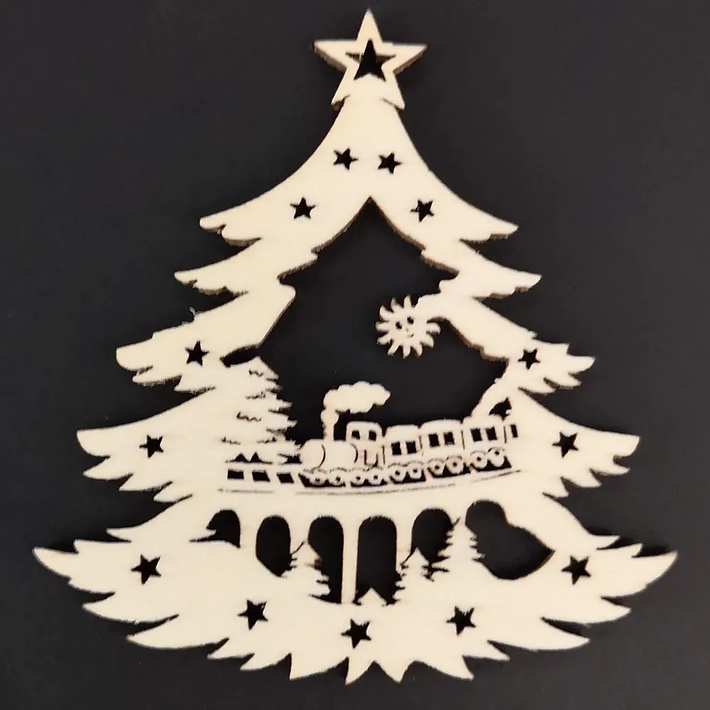 Drevená ozdoba stromčeka s vláčikom 6 cm