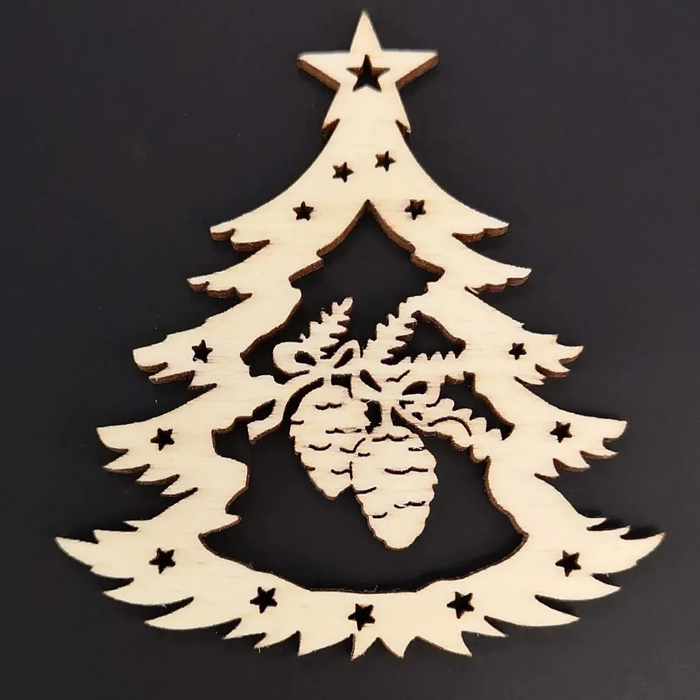 AMADEA Drevená ozdoba stromček so šiškami 6 cm