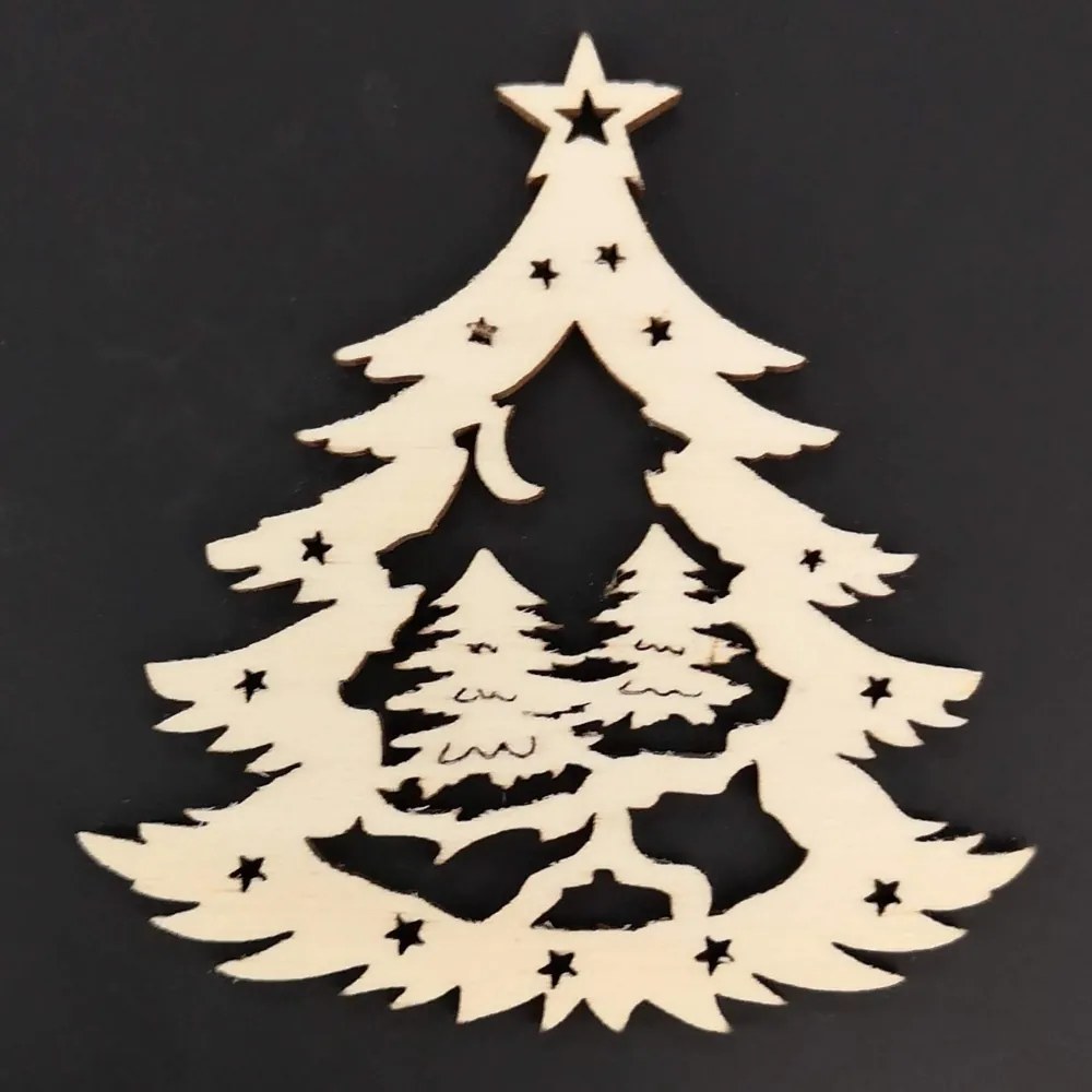Drevená ozdoba stromček so stromami 6 cm