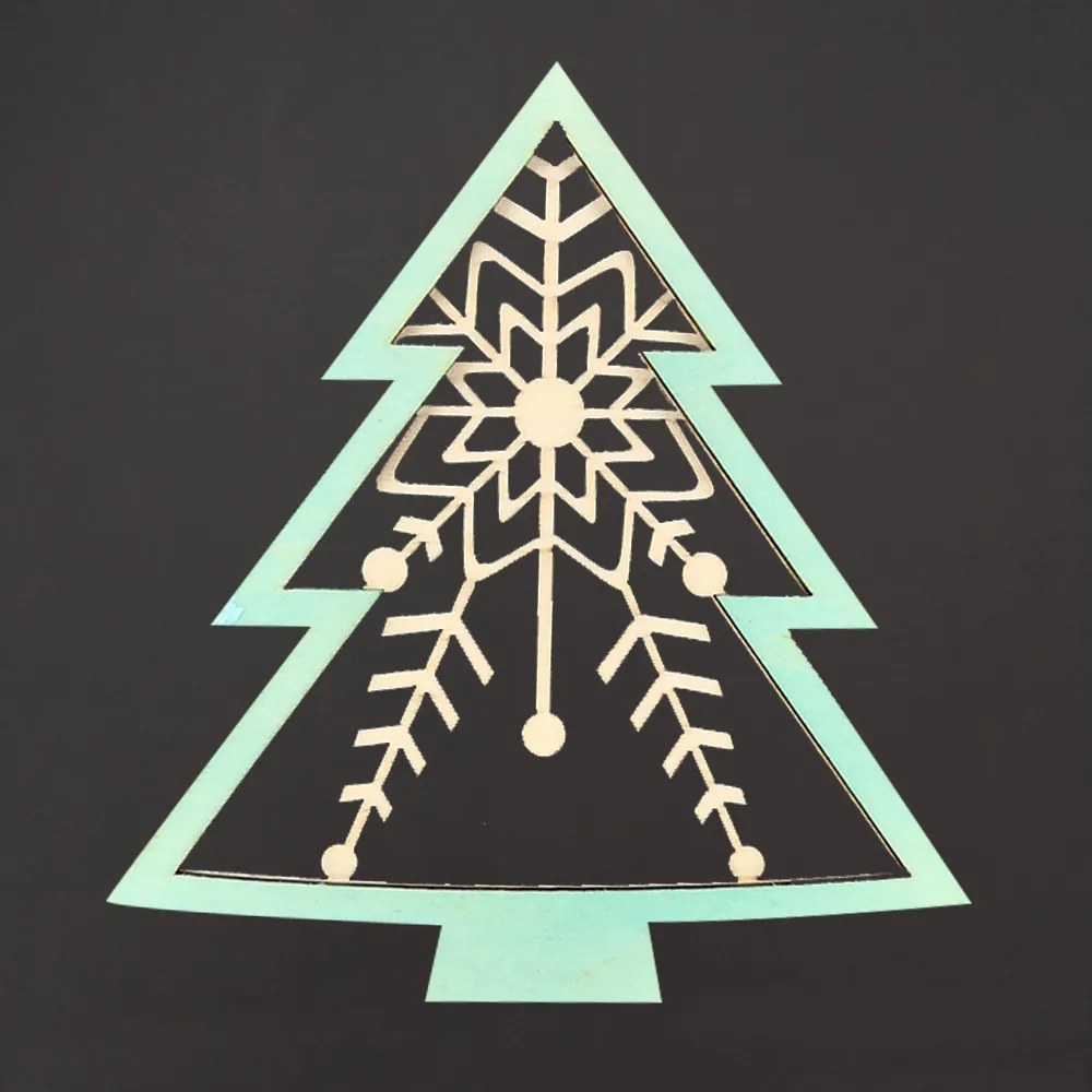 AMADEA Drevená ozdoba stromček – vločka dvojitý zelený, 9 cm, český výrobok