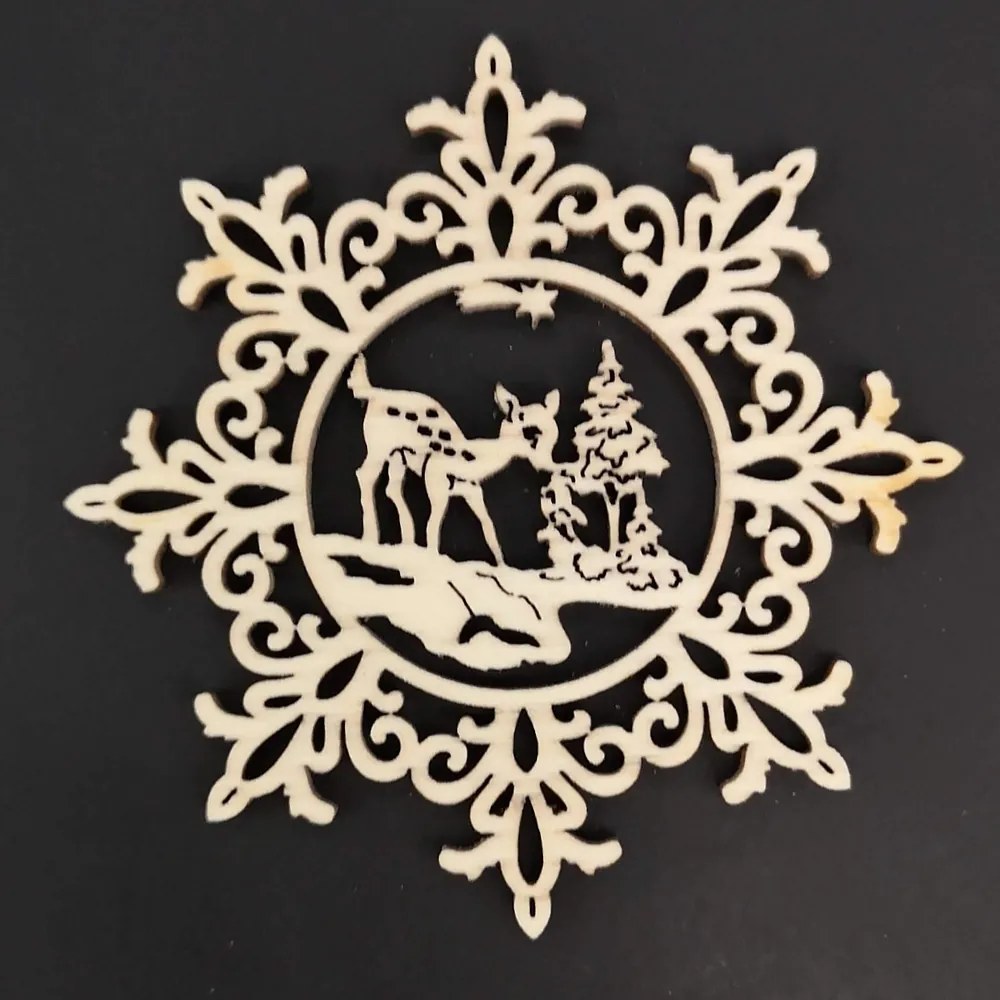 Drevená ozdoba vločka so srncom 6 cm