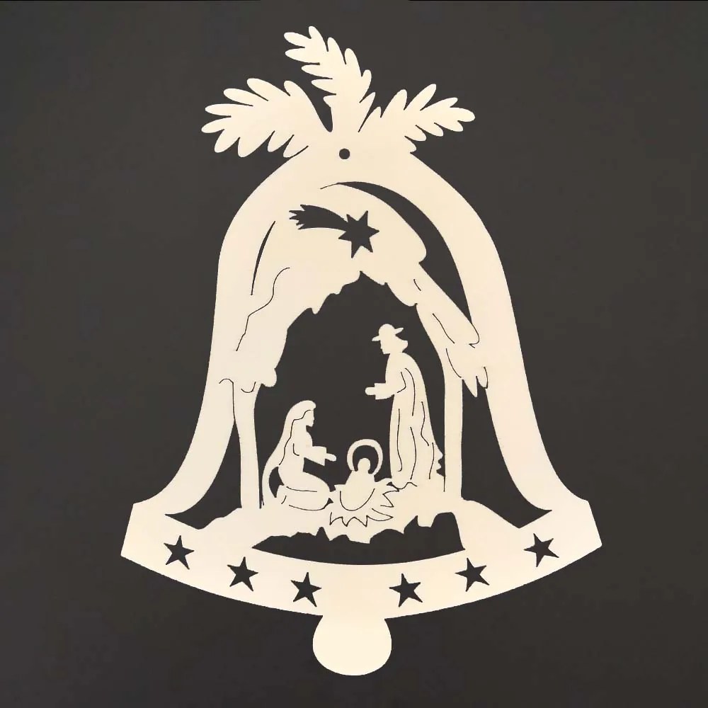 Drevená ozdoba zvonček s betlehemom 20 cm