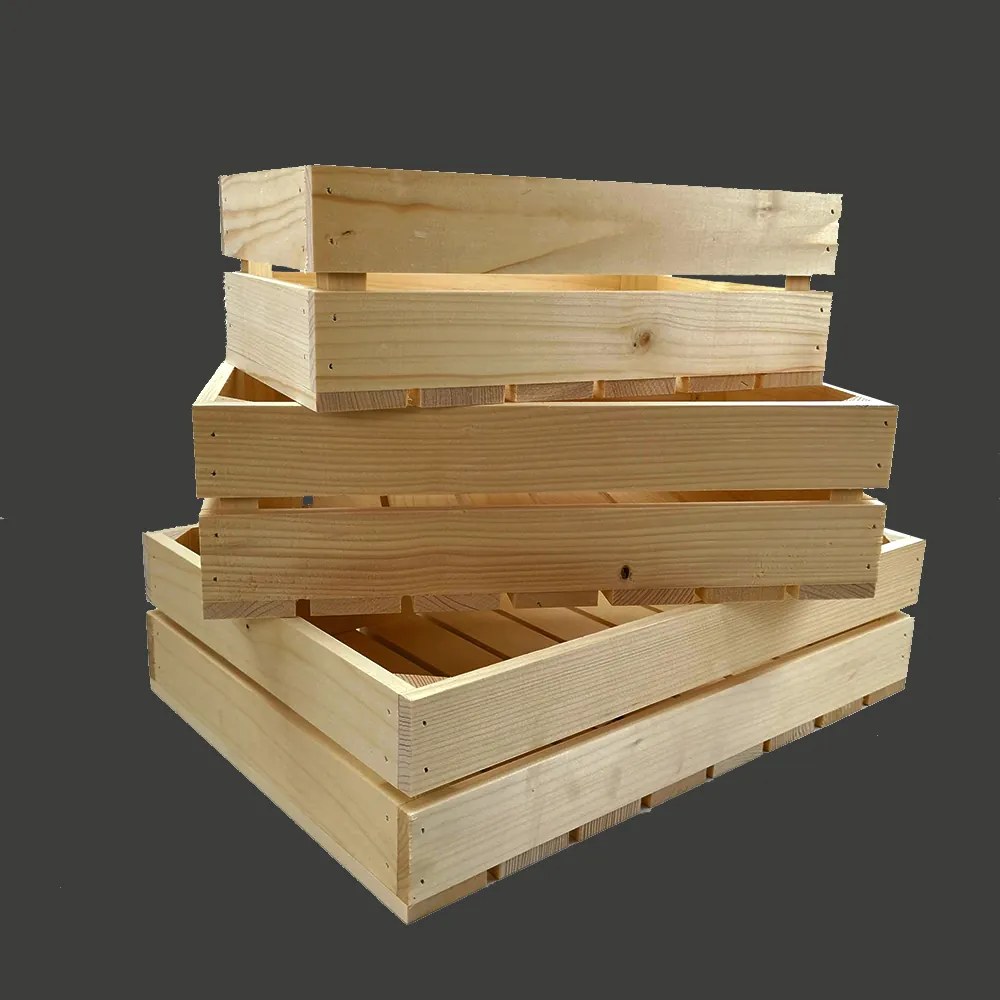 Drevená súprava 3 boxov z masívneho smrekového dreva dobre poslúži na ukladanie a organizovanie najrôznejších vecí. Otvory zabezpečujú cirkuláciu vzduchu. Súprava pozostáva z troch veľkostí boxov – najmenší: 34x21x12 cm (dĺžka/šírka/výška), objem 8 l, stredný 40x27x12 cm (dĺžka/šírka/výška), objem 12 l a najväčší 46x33x12 cm (dĺžka/šírka/výška), objem 18 l. Krabice sú bez povrchovej úpravy a majú nosnosť 15 kg.