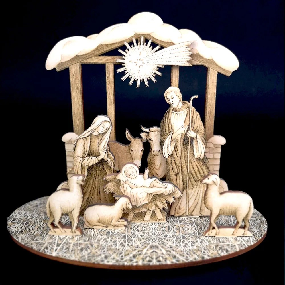 Drevená dekorácia 3D sépiový betlehem 20 cm je vyrobená z topoľovej preglejky a potlačená. Tradičná drevená postieľka sa dodáva celá na kartóne a zabalená v celofánovom vrecku. Jednotlivé diely sa zostavujú podľa priloženého návodu, montáž je veľmi jednoduchá.