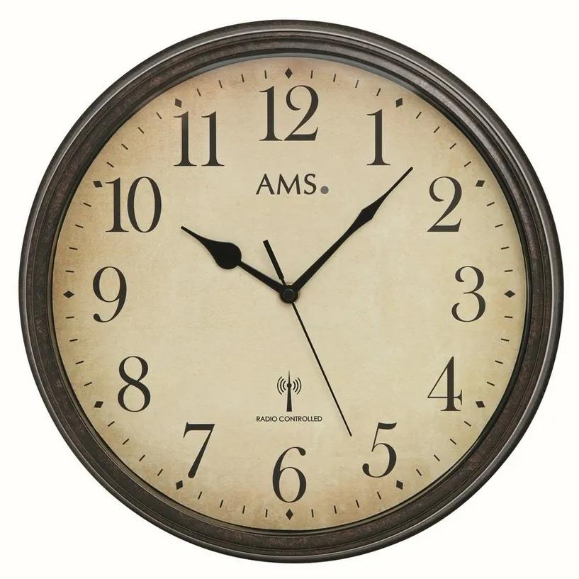 Elegantné nástenné hodiny ozvláštnia vašu obývaciu izbu a tiež si nájdu svoje miesto v predsieni či chodbe. Rám hodín je vyrobený z kovu s dekorom patiny, ciferník je krytý minerálnym sklom. Decentná kombinácia materiálov a minimalistického spracovania z nich robí ten správny kúsok pre interiér vášho domova.Nástenné hodiny riadené rádiovým signálom. Quartzový hodinový strojček na batériu. Predĺžená záruka na 3 roky!Nástenné, stolné a podlahové hodiny AMS sú spojením elegancie a precíznej nemeckej kvality. Do detailu prepracované hodiny AMS sú vyrábané už viac než 100 rokov v nemeckom Schwarzwalde. Nemecké hodiny AMS sú hodiny s trvalou hodnotou.