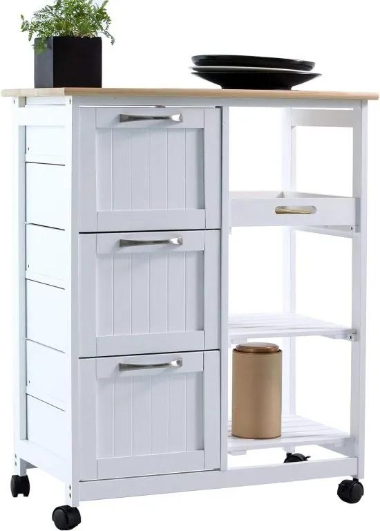 Kuchynský vozík je praktickým riešením pre všetky typy kuchýň bez ohľadu na veľkosť. Servírovací vozík ponúka nielen praktický úložný priestor na kolieskach, ktorý poskytuje miesto pre všetok riad a vybavenie, ale aj ďalšiu pracovnú plochu, ktorú budete potrebovať na prípravu jedla alebo konkrétne pochúťky.