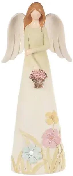 Figúrka anjela z polyresinu v šatách s kvetinkovým vzorom oživí váš interiér a môže byť aj vhodným darčekom.