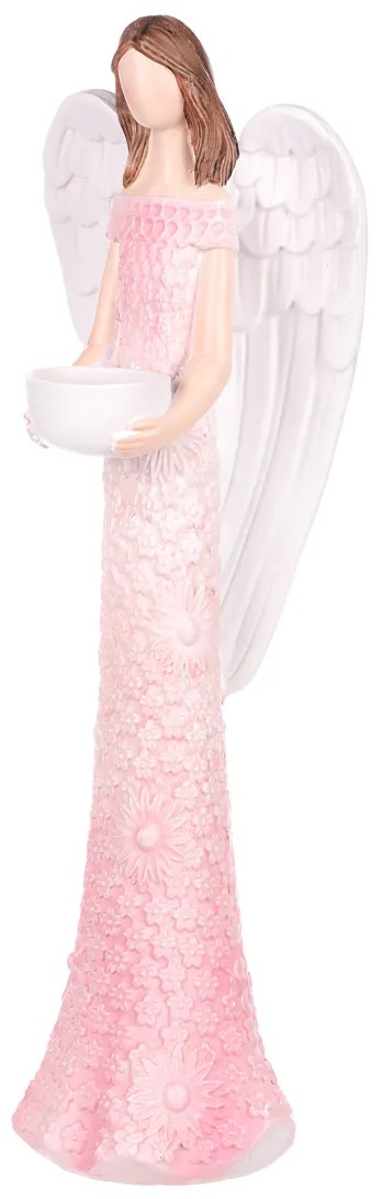 Postava anjela s ľahkého a odolného polyresinu, možnosť použitia ako svietnik. Výška 40cm.