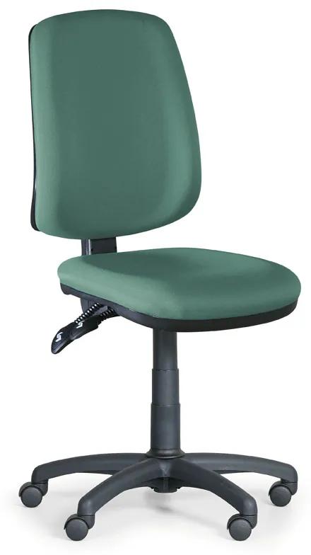 · kancelárska stolička ATHEUS s látkovým čalúnením · pokročilá asynchrónna mechanika pre nezávislé nastavenie sklonu sedáku a operadla · sedák so šírkou 50 cm a hĺbkou 47 cm, operadlo s nastaviteľnou výškou 55 – 63 cm · plastový kríž, nosnosť 130 kg · kolieska na mäkké podlahy (napr. koberce, linoleum atď.)