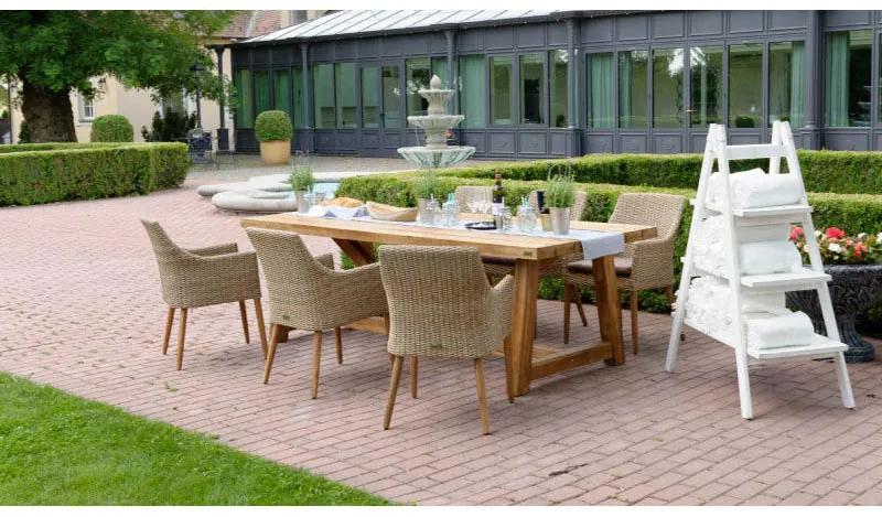 Moderná a zároveň klasická exteriérová stolová súprava Antigua Faro natur v kombinácii stola z masívneho agátového dreva a 6-tich pohodlných kresiel v prirodzenom prevedení ratanového výpletu.