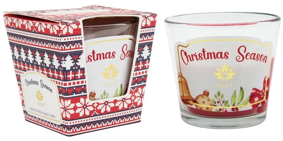 Takto voňajú Vianoce! Luxusná sviečka Arome krásne prevonia interiér a navodí príjemnú vianočnú atmosféru. Sviečka je v poháriku s vianočnou potlačou a zabalená do darčekovej farebnej krabičky. Vydrží horieť 32 až 34 hodín.