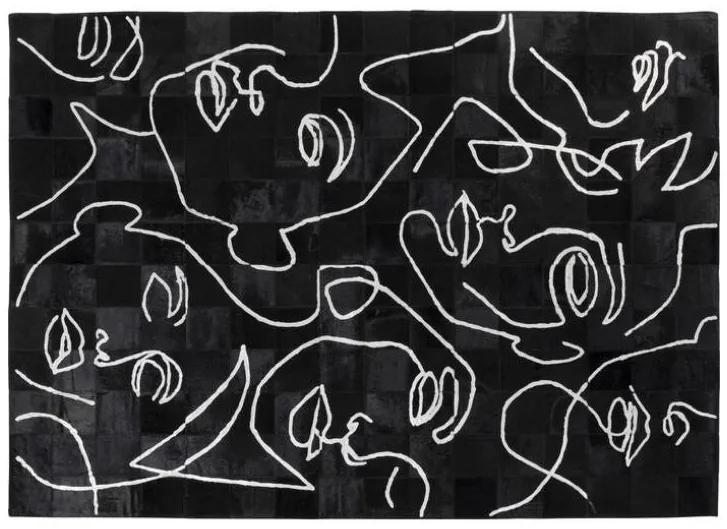 Štýlový koberec Art Faces v pútavom vzhľade v dominantnej čiernej s bielymi líniami.