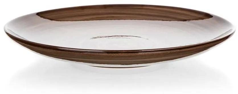 Hnedý keramický tanier PALAS sa bude hodiť nielen do prírodne ladeného interiéru. Tento priestranný tanier má priemer 27 cm a je skvelou voľbou na každodenné stolovanie.Vďaka svojej farbe je ľahko kombinovateľný nielen s hnedými, ale aj s krémovými taniermi, miskami a šálkami z kolekcie PALAS.Je vyrobený z odolnej keramiky a je možné ho použiť aj v mikrovlnnej rúre či umývať v umývačke riadu.