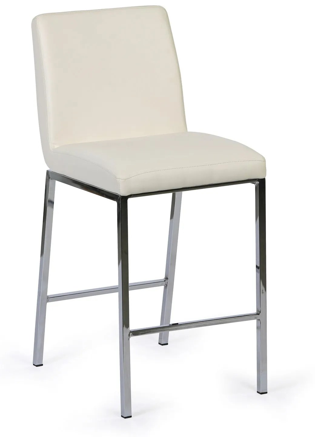 · barová stolička strednej výšky · kovové nohy s chrómovou povrchovou úpravou · plastové kryty nôh · povrch sedadla a operadla z kvalitnej EKO kože · opierka nôh vo výške 22 cm od zeme · nosnosť 120 kg