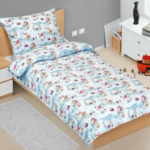 Bellatex Vianočné bavlnené obliečky Škriatok na korčuliach, 140 x 200 cm, 70 x 90 cm