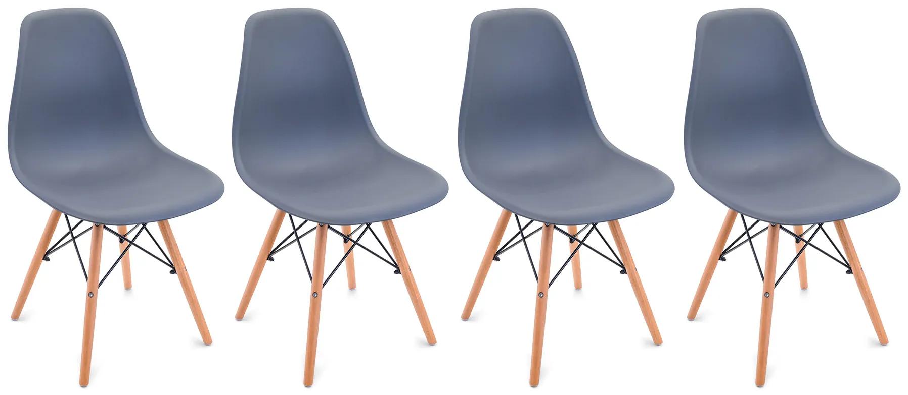 Jedálenská stolička s tvarovaným plastovým sedadlom s nohami z bukového masívu v prírodnom odtieni.