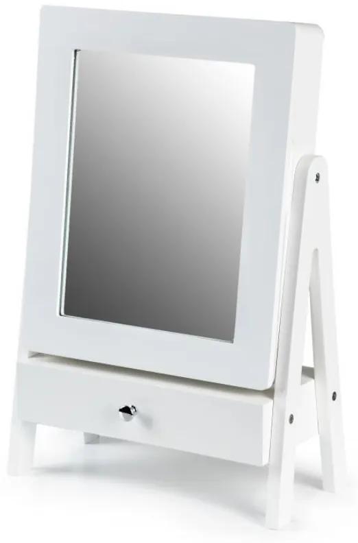 Štýlové zrkadlo bude vynikajúcim praktickým doplnkom do domácnosti. Je to praktické riešenie pre odkladanie šperkov, ale aj kozmetiky a mnohých iných doplnkov v krásnej, elegantnej a štýlovej bielej farbe. Na háčiky si môžete zavesiť retiazky, náramky a iné šperky.