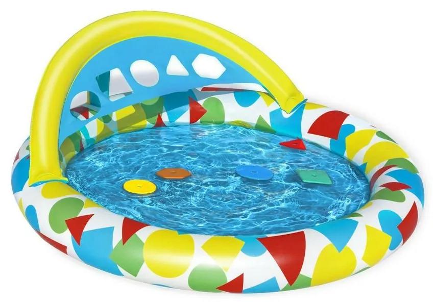 S týmto nafukovacím bazénikom si deti užijú množstvo zábavy a príjemného osvieženia. Súčasťou bazénika je 5 plastových farebných tvarov, ktoré deti vkladajú do otvorov. Táto hra zábavným spôsobom stimuluje učenie a predstavivosť, deti sa naučia poznávať základné tvary a farby. Zároveň podporuje aj rozvoj a zlepšenie koordinácie oko-ruka a rovnováhy.Súčasťou detského bazénika je podložka, ktorá môže byť naplnená vodou a deťom tak vznikne pohodlné miesto na hranie. Podložku je možné vybrať. Bazénik je možné použiť vo vnútorných aj vonkajších priestoroch.Balenie obsahuje: