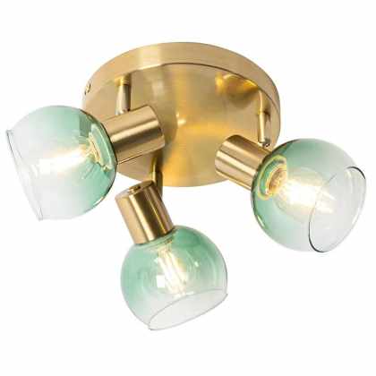 Art Deco stropné svietidlo zlaté so zeleným sklom 3 svetlá – Vidro