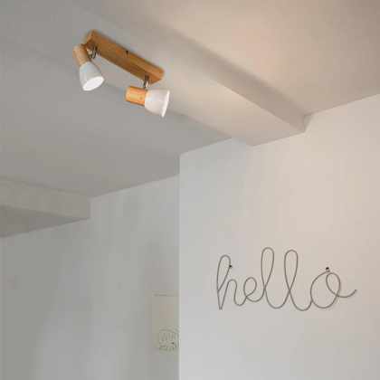 Stropné bodové svietidlo drevené a biele 2-svetlo nastaviteľné – Thorin