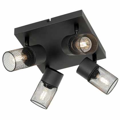 Priemyselné stropné bodové svietidlo čierne 4-svetlo nastaviteľné – Jim