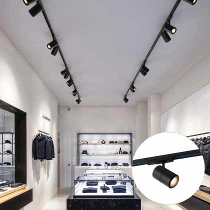 Moderný koľajnicový systém s 6 čiernymi bodovými svetlami 1-fázový – Slimline Uzzy