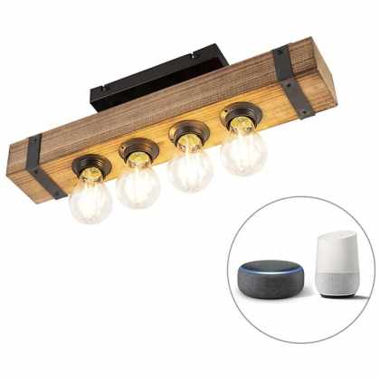 Inteligentné priemyselné stropné svietidlo drevené s oceľou vrátane 4 WiFi A60 – Reena