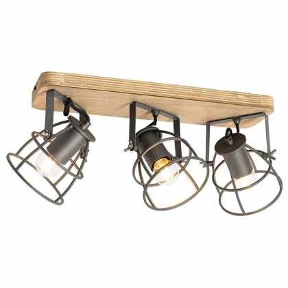Industriálne bodové tmavosivé a drevené nastaviteľné 3-svetlé – Arthur