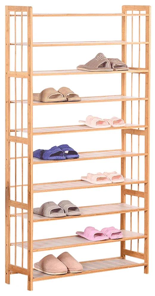 10-radový Baker botník z bambusu je dizajnový regál s 10 policami, ktoré sú vyrobené z lakovaného bambusu a plastu. Regál má rozmer 150 cm x 80 cm x 25 cm a nosnosť až 60 kg. Tento botník poskytuje dostatok miesta na uloženie obuvi a iných vecí. Bambusový materiál dodáva tomuto regálu prírodný vzhľad a zároveň pôsobí veľmi elegantne. Vďaka jeho vysokému dizajnu a kapacite, je ideálny pre každú domácnosť, ktorá potrebuje viac miesta na uskladnenie vecí.