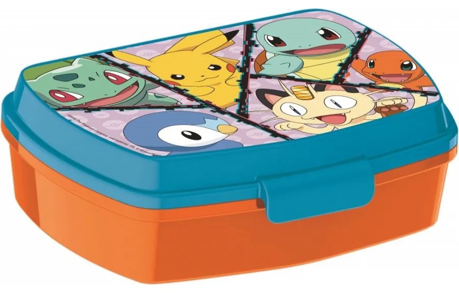 Desiatový box Pokémon . Krabička na desiatu do školy aj na cesty a výlety. Veko zdobí obrázok Pokémonov Pikachu, Squirtle, Charmandera, Bulbasaura, Piplupa a Meowth. Táto dóza na jedlo, alebo na iné drobné predmety je vhodná pre deti od 3 rokov a nie je vhodná do umývačky riadu, ani do mikrovlnnej rúry. Na čistenie nepoužívajte ani abrazíva a detergenty. Rozmery tohto boxu na desiatu sú cca 17 x 14 x 5,6 cm.