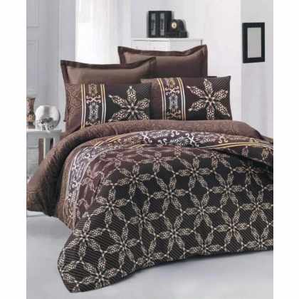 Obliečky bavlnený satén Alisa Hnedá TiaHome – 1x Vankúš 90x70cm, 1x Paplón 140x200cm