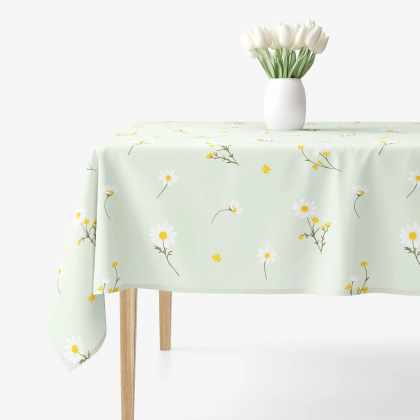 Goldea hranatý obrus 100% bavlnené plátno – harmanček na svetlo zelenom 100 x 140 cm
